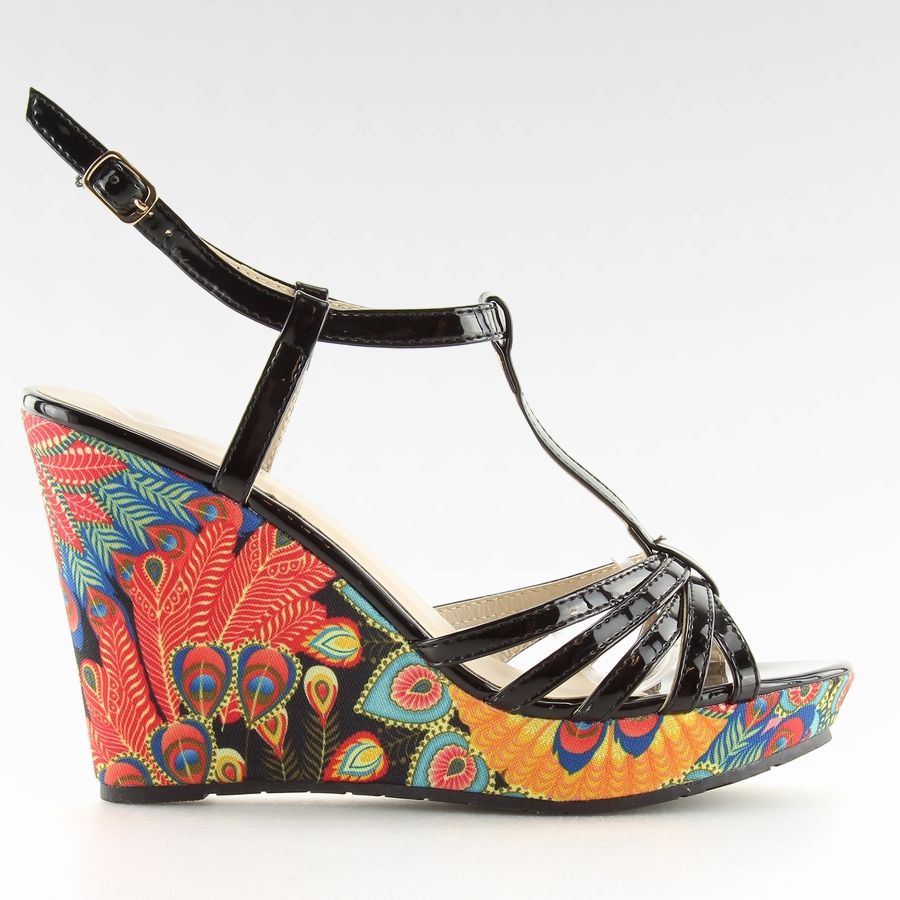Sandály vyrobené z lakované eko kůže vypadají výjimečně moderně a pozornost jistě upoutá i jejich unikátní design s ozdobným klínkem pavího oka. Díky klasickému designu bez špičky a přezky jsou nejen stylové, ale také praktické a snadno se nazouvají.
