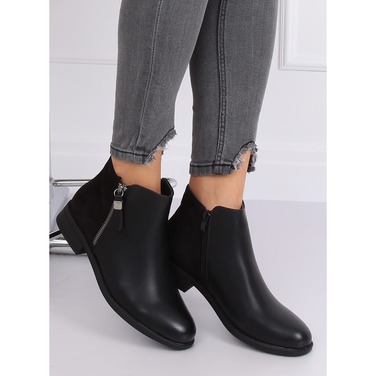 Objevte eleganci a pohodlí každý den s černými dámskými kotníčkovými botami B0-350 Black! Tyto stylové ploché boty kombinují módní design a funkčnost, díky čemuž jsou perfektní volbou pro každou moderní ženu. Vyrobeny z vysoce kvalitní ekologické kůže a ekologického semiše, potěší krásnou univerzální černou barvou, která se skvěle hodí k různým stylům.