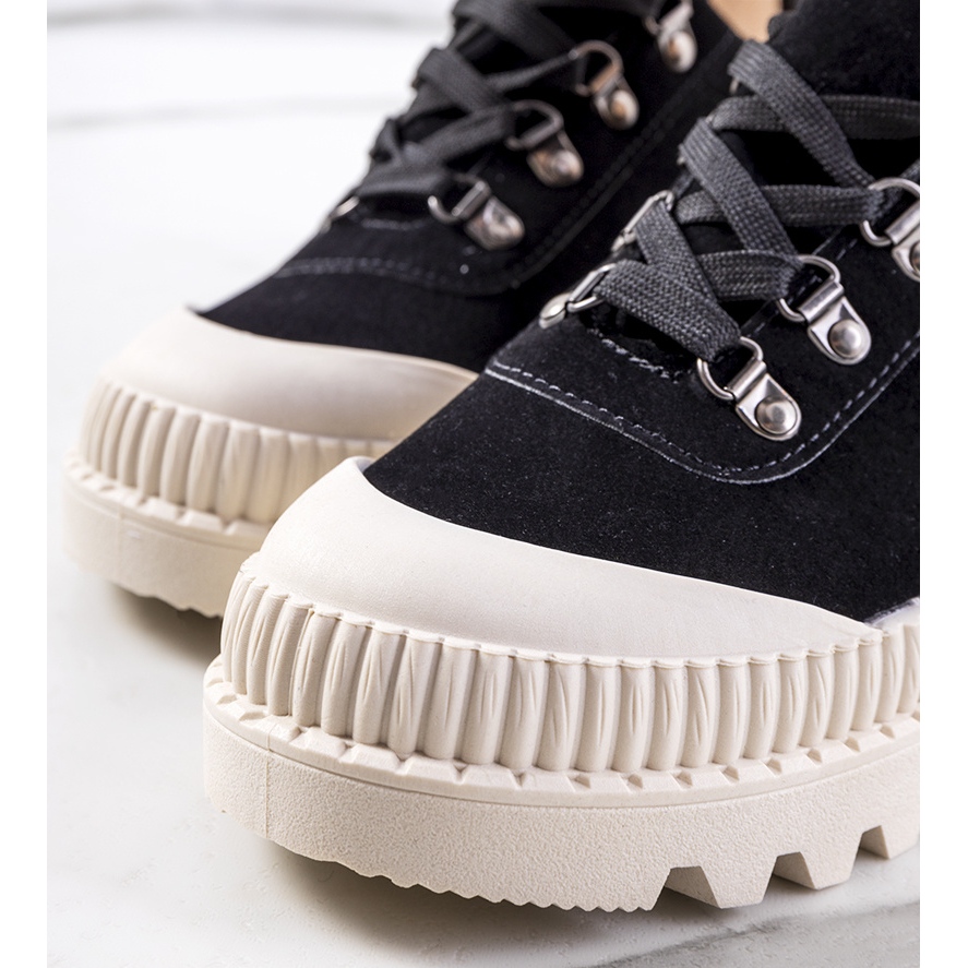 Boty sahají nad kotník, díky čemuž se skvěle hodí nejen ke sportovním, teplákovým stylům, ale i k romantickým šatům. Díky univerzální černé barvě je lze snadno kombinovat s různými šatníky.