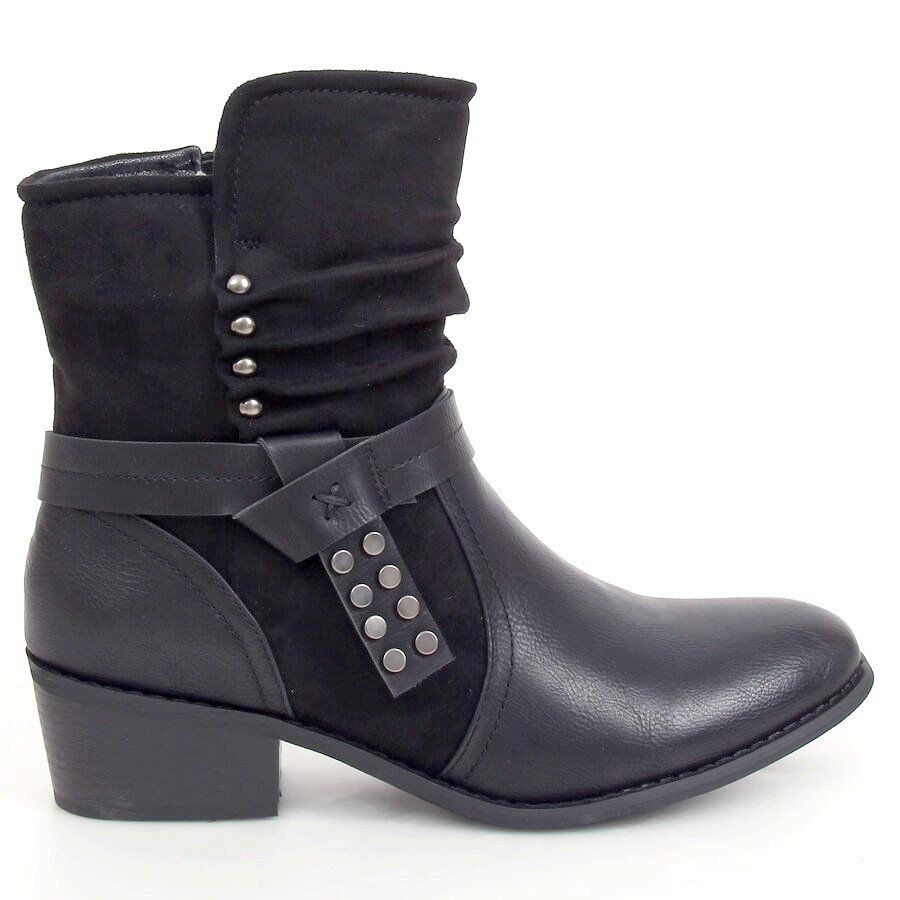 Objevte módu a pohodlí v jednom! Černé dámské kotníkové boty Z1122 Black jsou perfektní volbou pro každou příležitost. Díky širokému 4 cm vysokém podpatku poskytují nejen stylový vzhled, ale také komfort nošení po celý den. Nařasený svršek s ozdobnými cvočky jim dodává originální charakter, který je odlišuje od ostatních modelů.