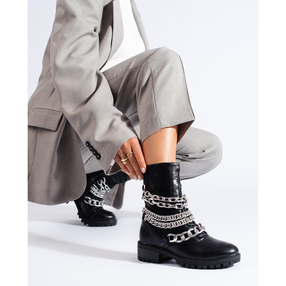 SHELOVET Černé dámské dělnické kozačky s řetízkem Shelovet černá