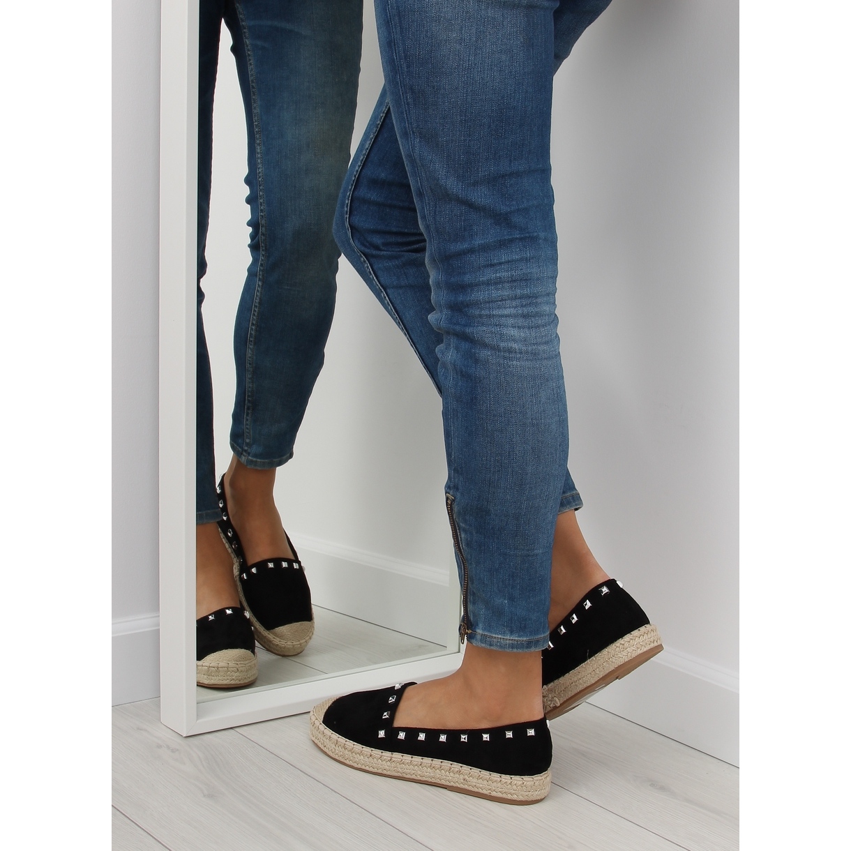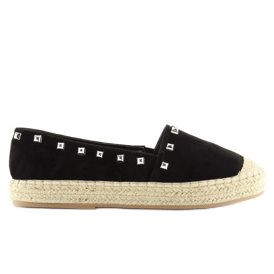 Dámské černé espadrilky 99-17 black jsou vynikající volbou pro ženy, které si cení stylu a pohodlí. Tyto originální espadrilky se vyznačují módním designem obohaceným o poutavé cvočky, které jim dodávají charakter a expresivitu. Semišová ekologická kůže, ze které jsou boty vyrobeny, zajišťuje nejen elegantní vzhled, ale také komfort nošení.