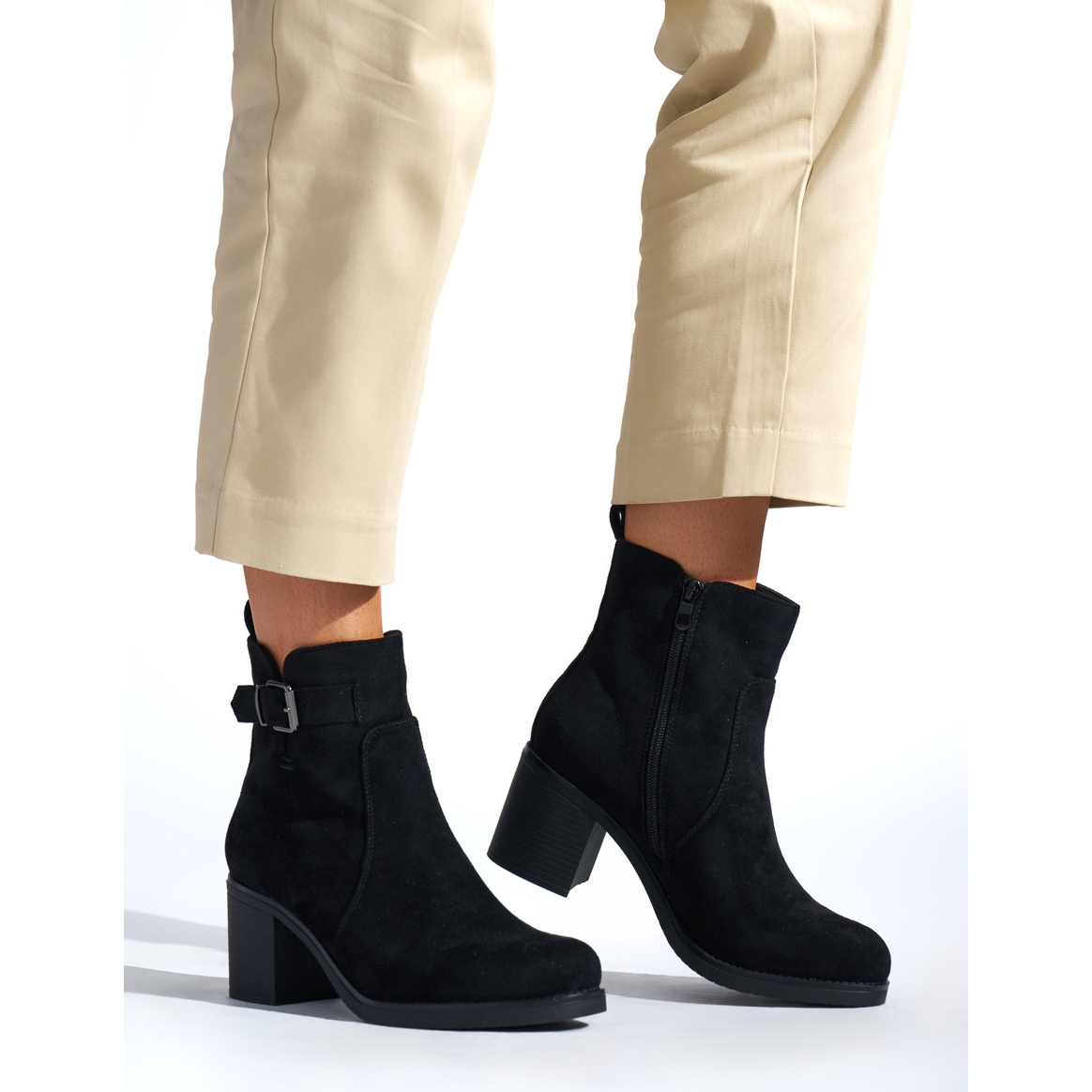 Vyrobené z ekologické semišové kůže vypadají nejen velmi elegantně, ale také zajišťují pohodlí nošení. Jejich textilní interiér a ztužená pata záruka podpory nohou po celý den. Výška paty 6 cm dělá boty ideální volbou jak denně, tak pro speciální výstupy.