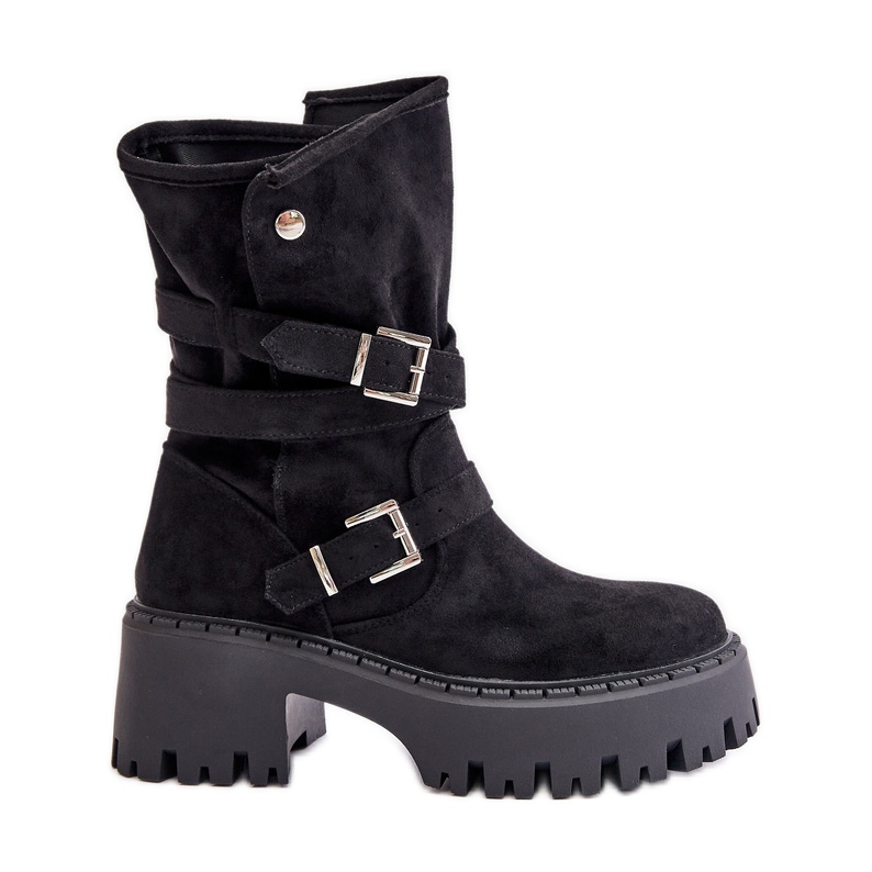 Podrobnosti: Černé dámské kotníkové boty na masivním podpatku s přezkami a páskem Nerelisa černá