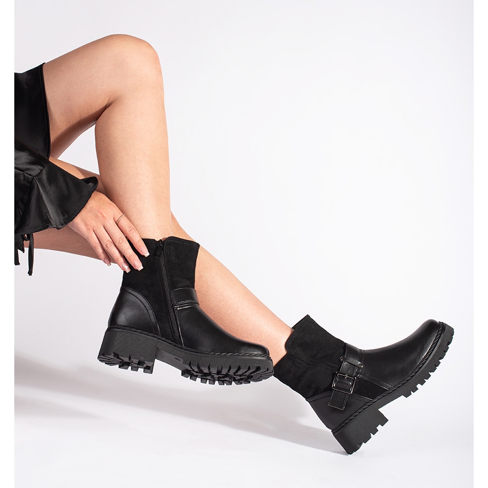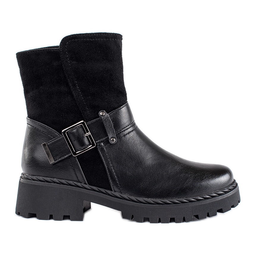 Černé dámské kotníkové boty s ozdobnou sponou černý
