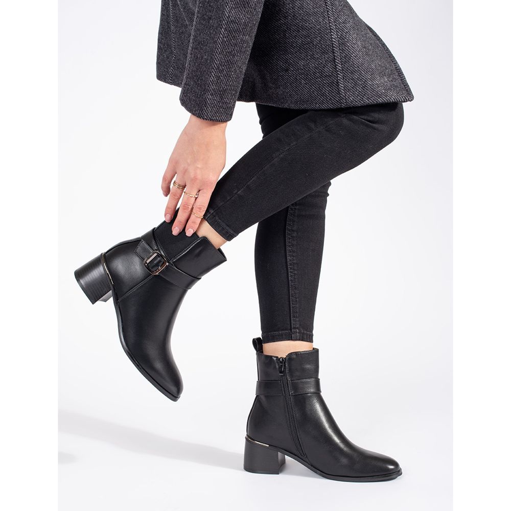 Černé dámské kotníkové boty s přezkou černý