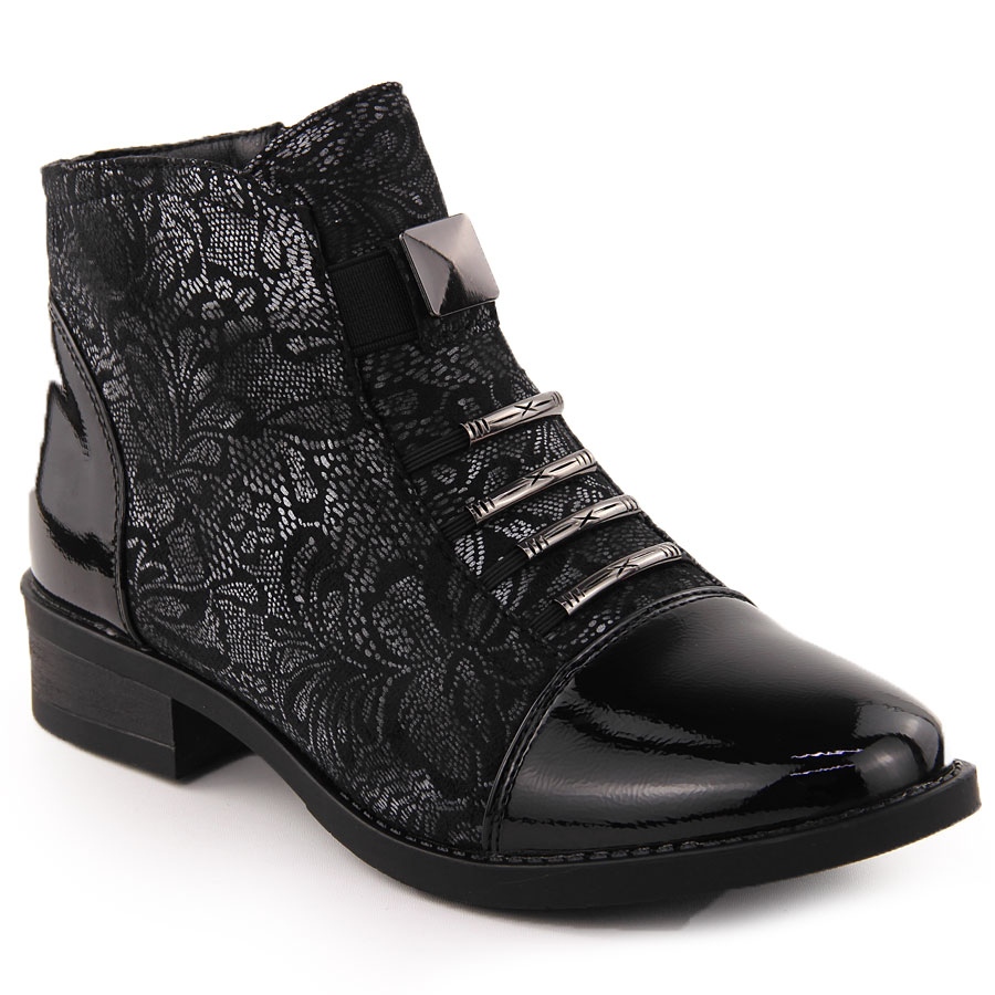 Sabatina Černé dámské kotníkové boty se stříbrným motivem květin Sabatina DM24-08 černá