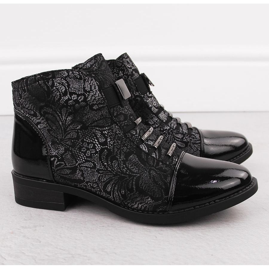 Podrobnosti: Černé dámské kotníkové boty se stříbrným motivem květin Sabatina DM24-08 černá