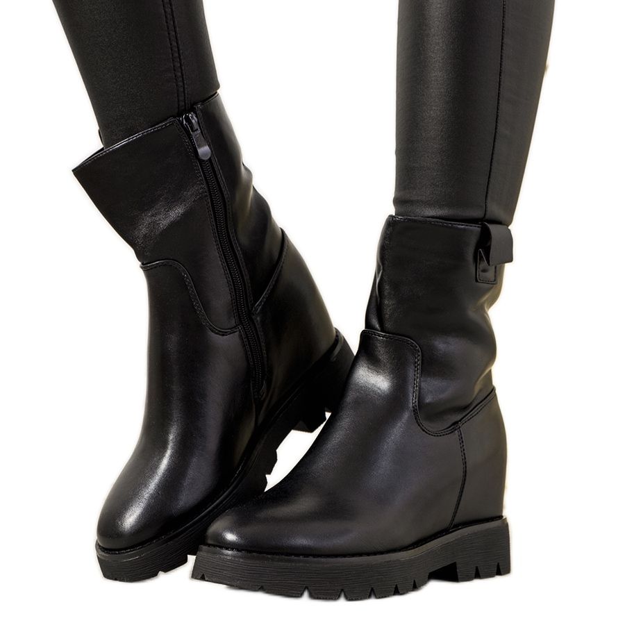 Inna marka Černé dámské kozačky na klínovém podpatku New Goldies černá