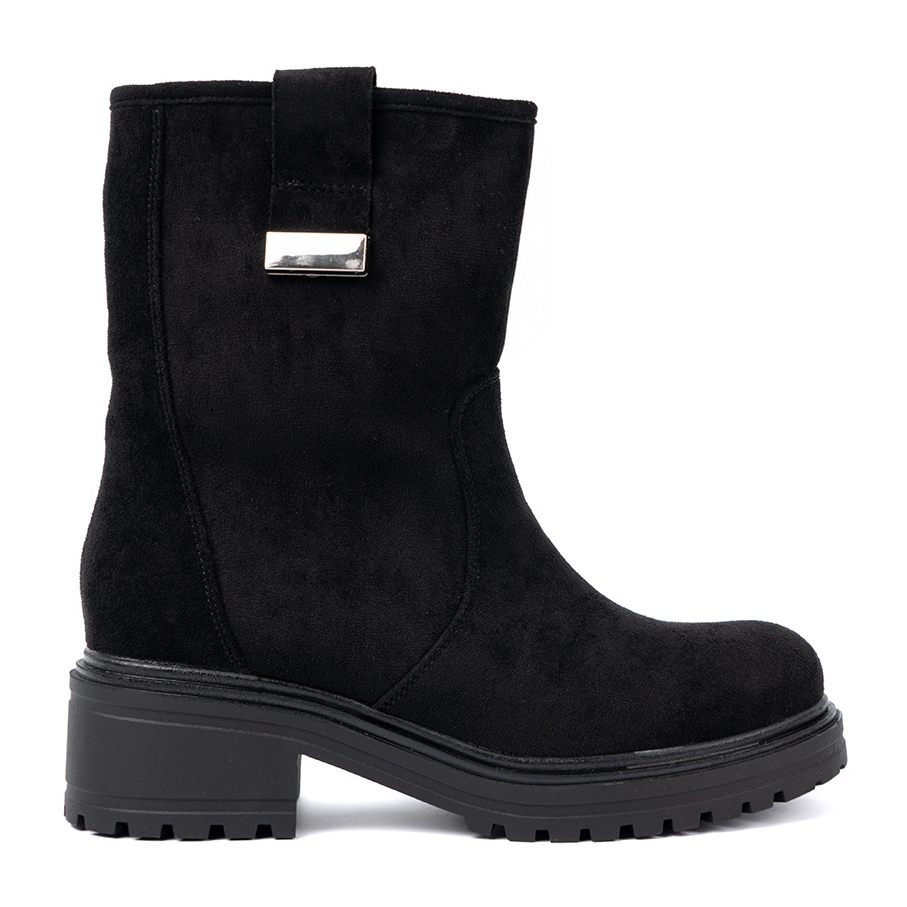 Objevte perfektní kombinaci stylu a pohodlí s černými černými botami na masivní podešev. Tyto elegantní příležitostné boty jsou skvělou volbou pro podzim a zimu, která se dokonale hodí do každodenního oblečení. Vyrobené z ekologické semišové kůže, boty vypadají velmi atraktivní a jsou šetrné k životnímu prostředí.
