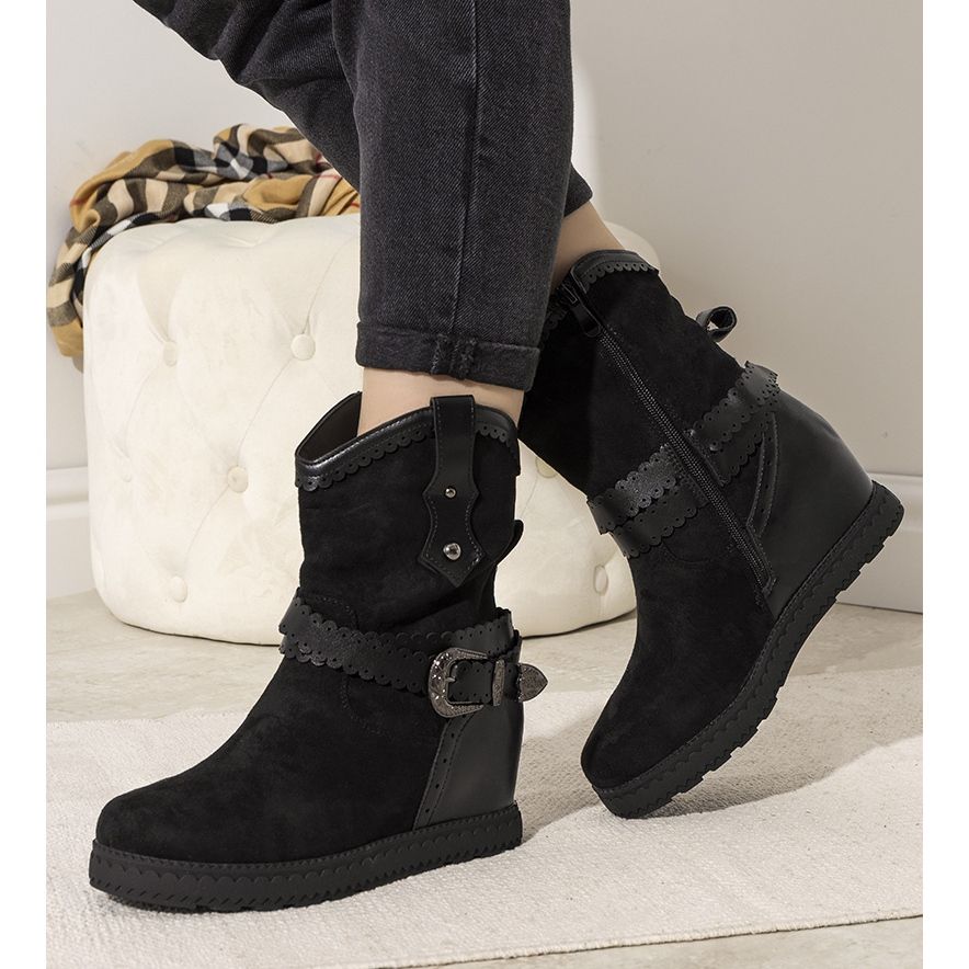 Inna marka Černé dámské kozačky se zateplením na klínku Sherry černá
