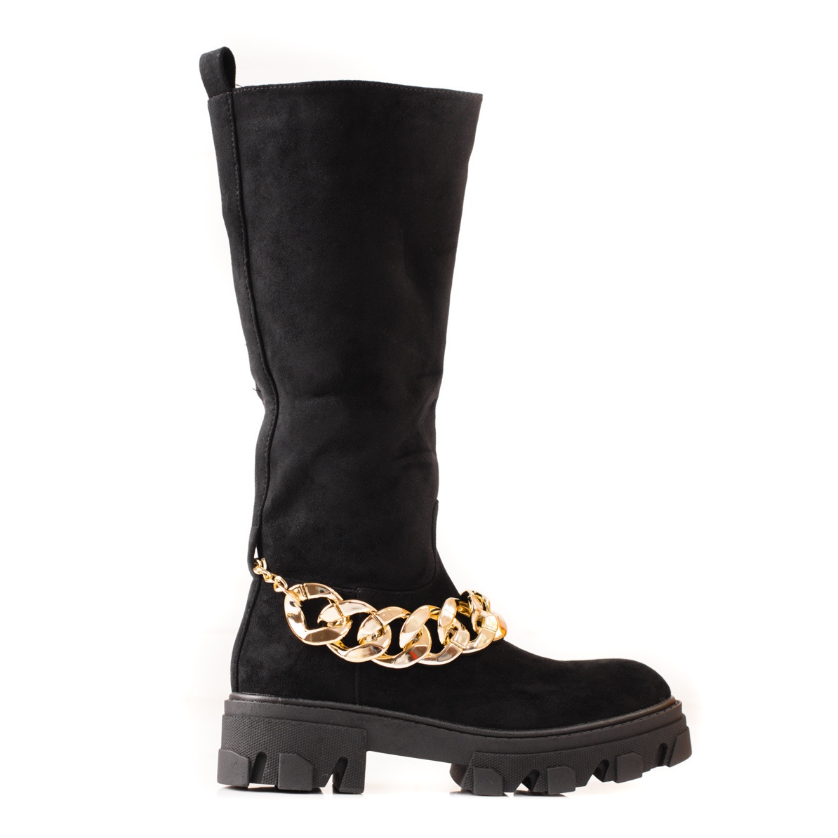 Inna marka Černé dámské kozačky se zlatým řetízkem černá