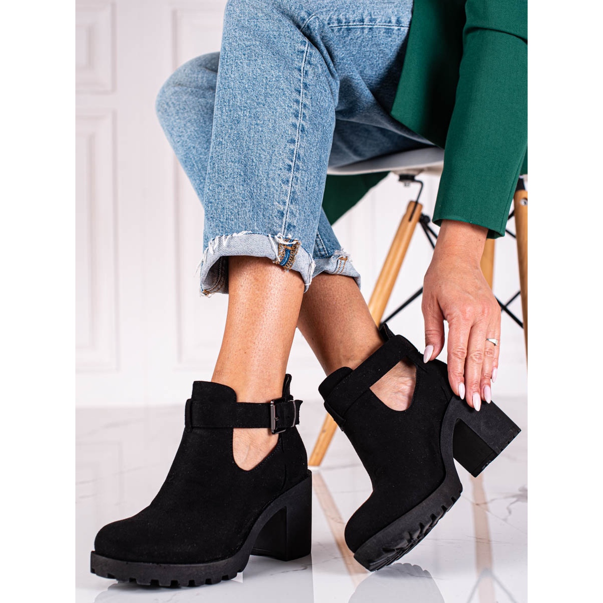 Dámské kotníkové boty Shelovet v klasické černé barvě jsou perfektní nabídkou na podzimní/zimní sezónu, kombinující ležérní a rockový styl. Tyto boty vyrobené z vysoce kvalitní imitace semiše nejen skvěle vypadají, ale také poskytují pohodlí pro každodenní nošení.