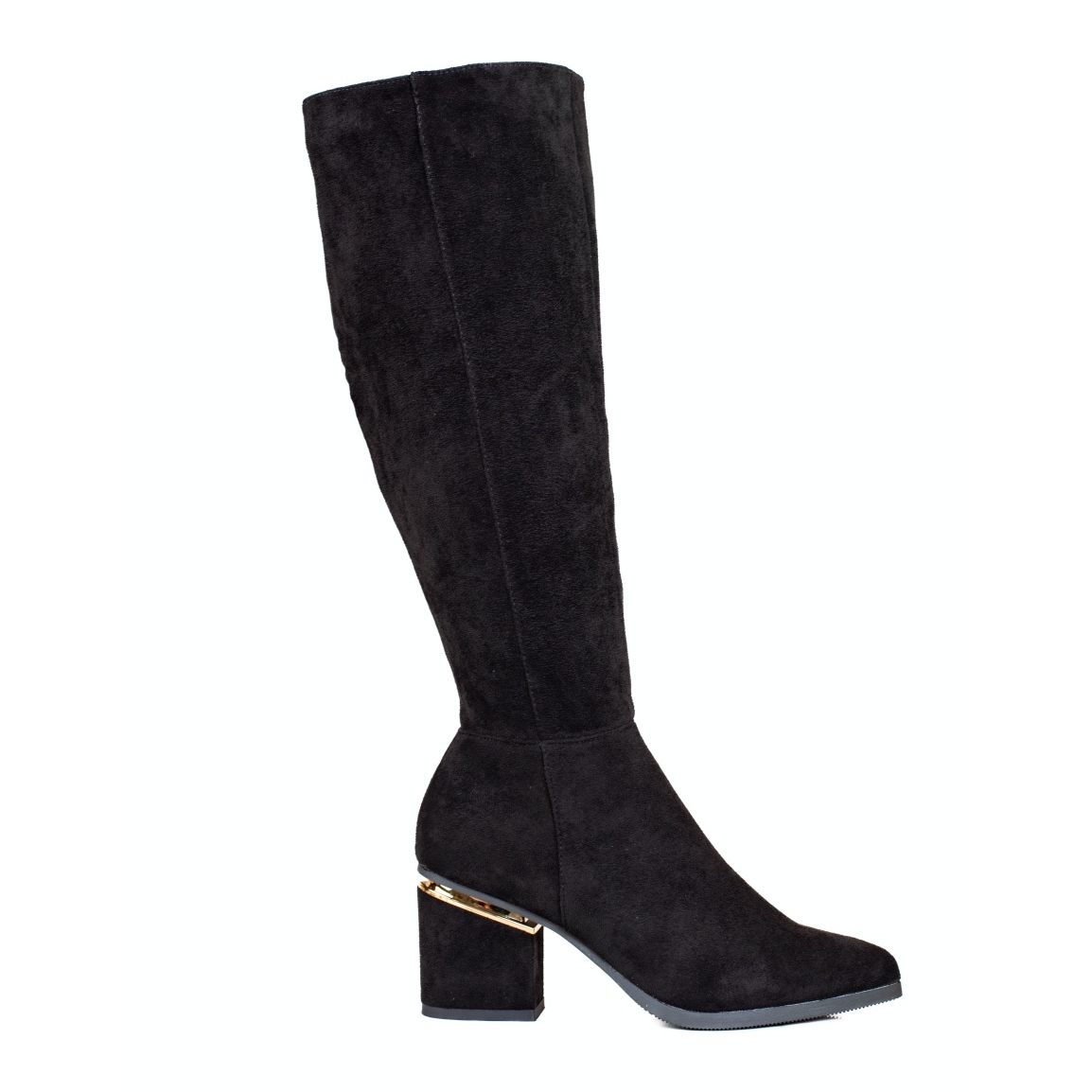 Díky širšímu svršku (38 cm) a výšce kolen boty dobře sedí na noze a 7centimetrový podpatek ve tvaru bloku dodává eleganci a zeštíhluje siluetu. Hladká, syntetická podešev je odolná proti oděru, což zajišťuje odolnost obuvi.