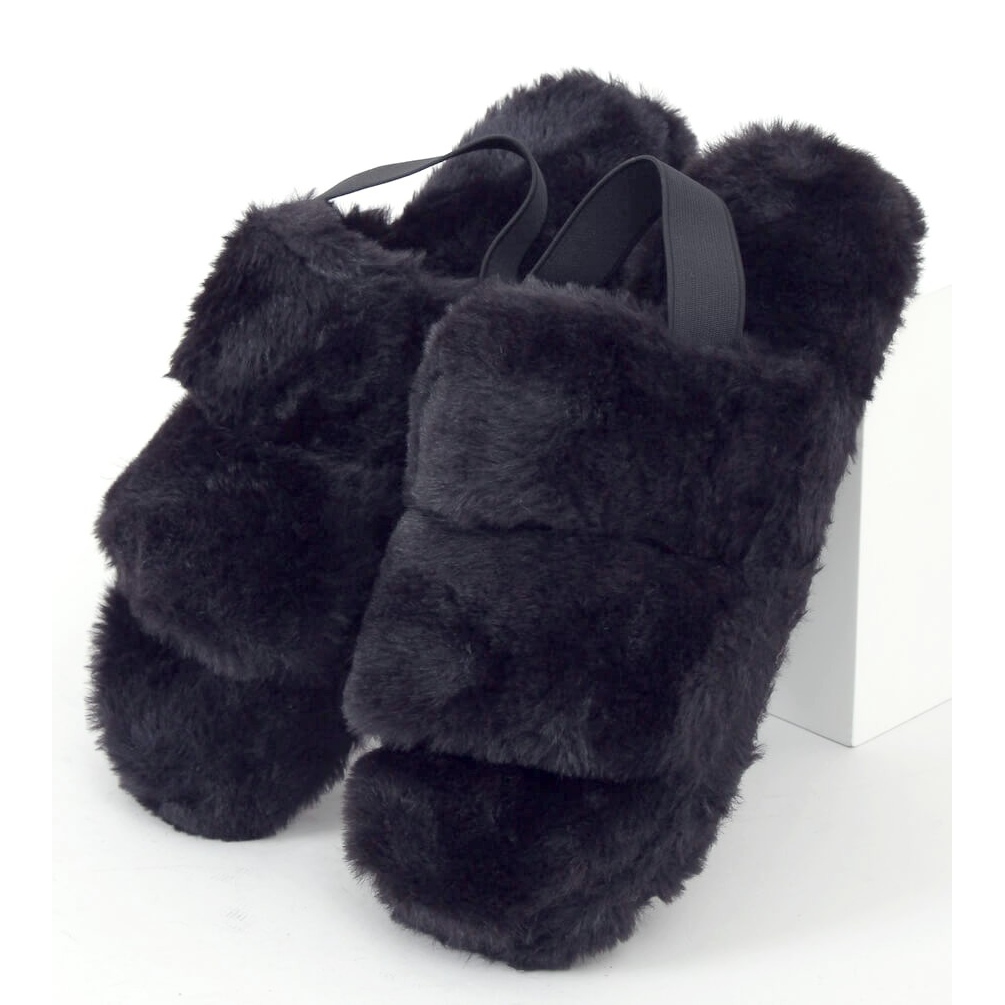Podrobnosti: Černé dámské kožešinové pantofle N-92 Black černá