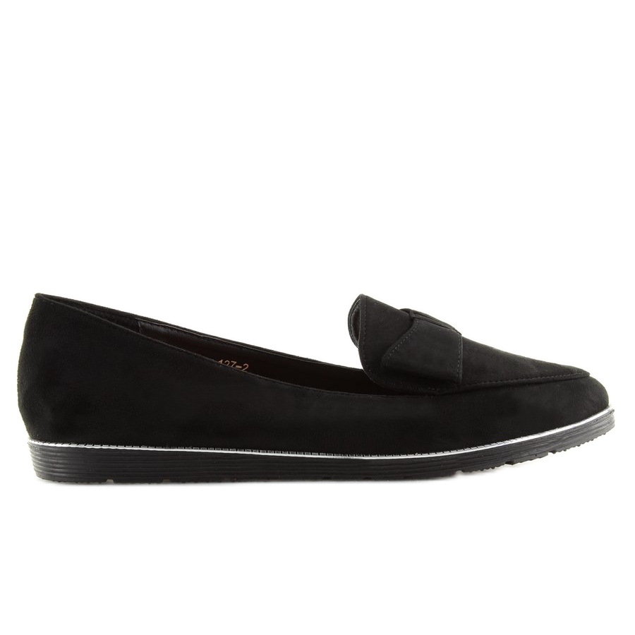 Objevte eleganci a pohodlí s dámskými černými mokasínami 127-2 black! Tyto stylové boty s krásnou mašlí a stříbrným lemováním podél podrážky jistě zdůrazní váš individuální styl a hodí se ke každému každodennímu stylu.