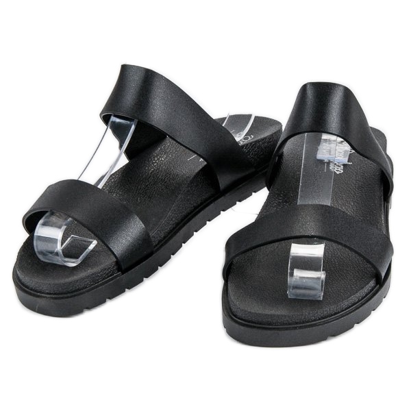Černé žabky dokonale zapadají do minimalistického trendu, takže se skvěle hodí k různým stylům. Bez vzoru a bez špičky, jejich elegantní vzhled dodává lehkost každému kroku. Díky voděodolnému provedení je využijete jak na pláži, tak při letní procházce kolem bazénu.