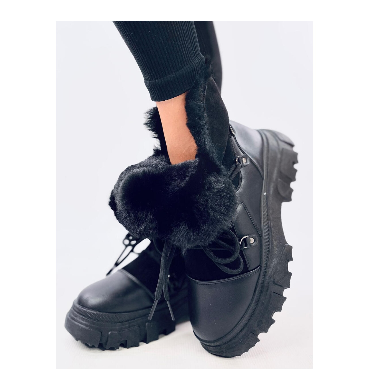 Sněhové boty černých žen jsou perfektní volbou pro zimní dny. Tyto stylové boty, vyrobené z kombinace ekologické semiše a ekologické kůže, poskytují nejen módní vzhled, ale také pohodlí a teplo. Díky kožešinovému izolátoru budou nohy dokonale chráněny před chladem, což z nich činí perfektní volbu pro mrazivé procházky.