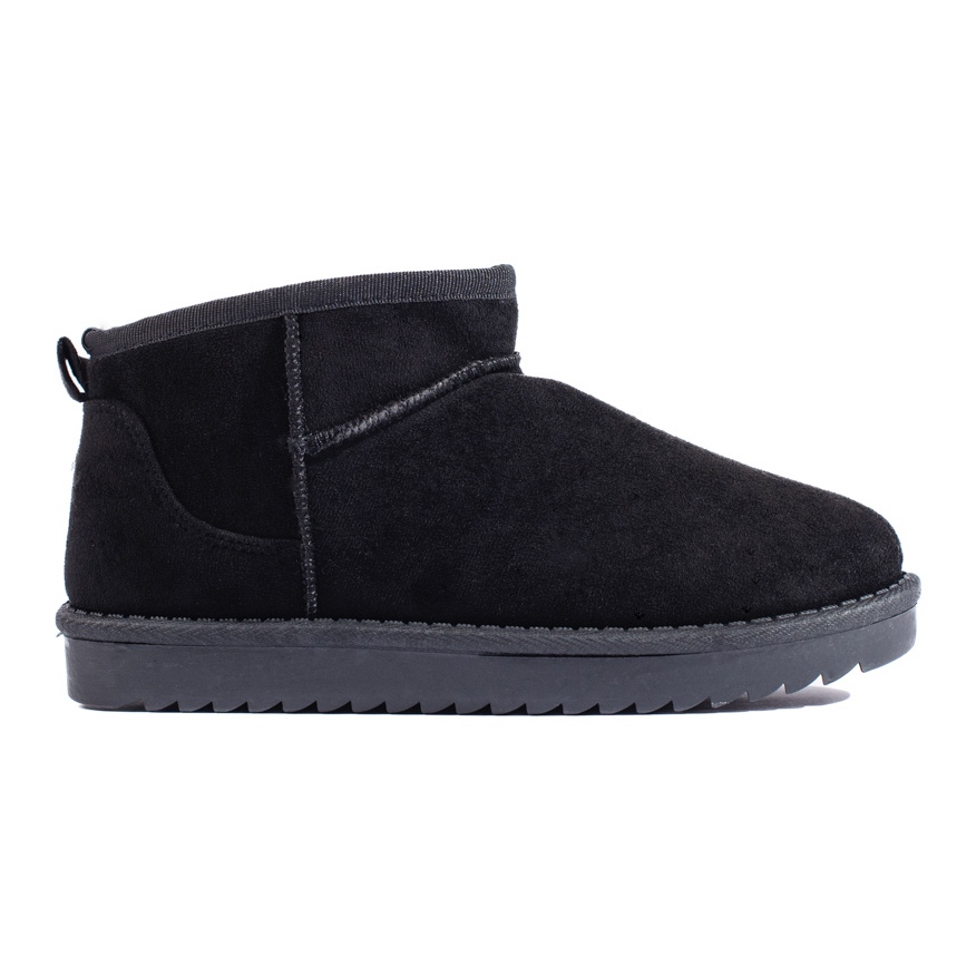 Černé sněhové boty Shevet - teplé, pohodlné a univerzální boty pro chladné dny. Klasické, matné černé a jednoduché, příležitostné řez způsobuje, že model dokonale odpovídá každodenním stylizacím - od džíny po bundu dolů. Textilní horní a měkká izolovaná podšívka zajišťuje tepelné pohodlí a další kožešinu v díře přidává styl a příjemné teplo.