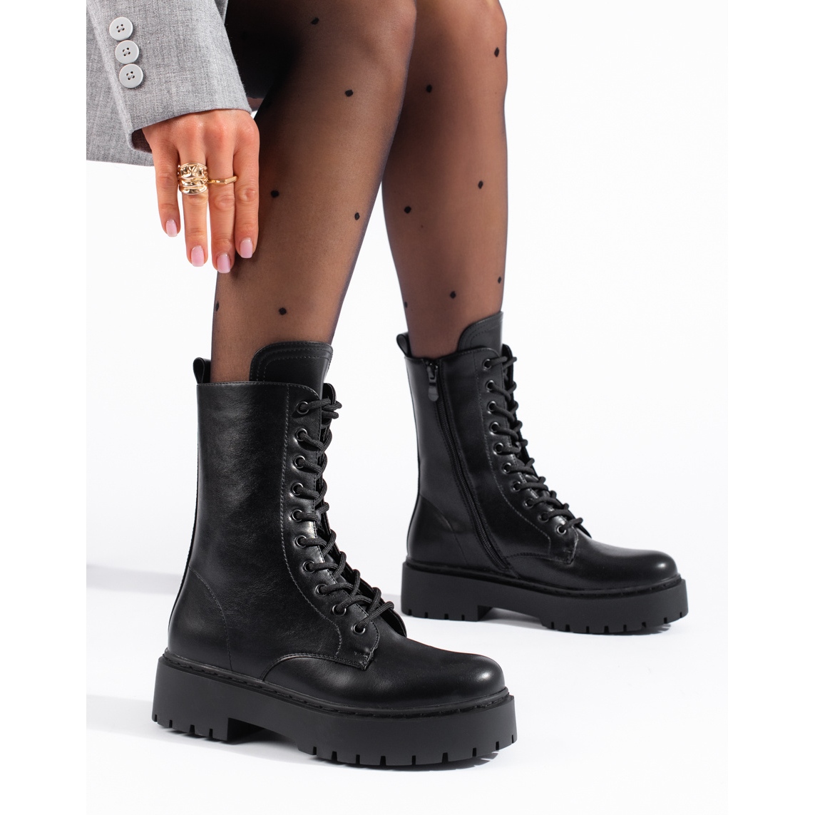 Černé dámské volné boty na platformě od výrobce W. Potocki jsou perfektní volbou pro ženy, které hledají kombinaci pohodlí a stylu v každodenních outfitech. Tyto boty vytvořené pro podzimní a zimní období se vyznačují ležérním a rockovým charakterem, který dokonale zapadá do módních trendů.