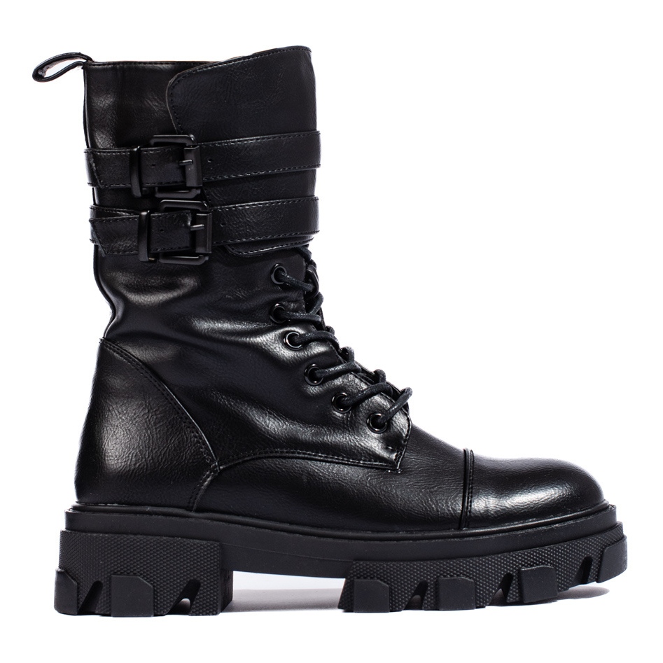 Černé dámské baggy s přezkami Shelovet jsou perfektní kombinací ležérního stylu a rockové atmosféry, ideální pro každodenní nošení. Odolné a módní, vytvořené pro ženy, které oceňují pohodlí a originalitu. Svršek dosahuje nad kotník a poskytuje dostatečnou ochranu a stabilizaci nohy.