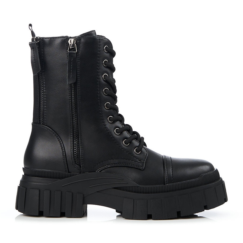 Za povšimnutí stojí funkční zapínání: kombinace zipu a šněrování zaručuje nejen snadné nazouvání, ale také možnost přizpůsobit obuv individuálním potřebám uživatele. Ozdobný zip dodává rockový charakter a zdůrazňuje originalitu obuvi.