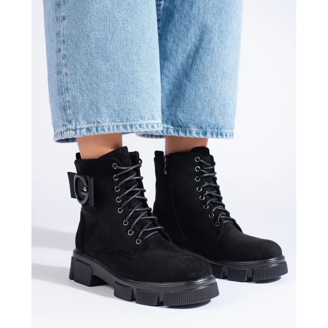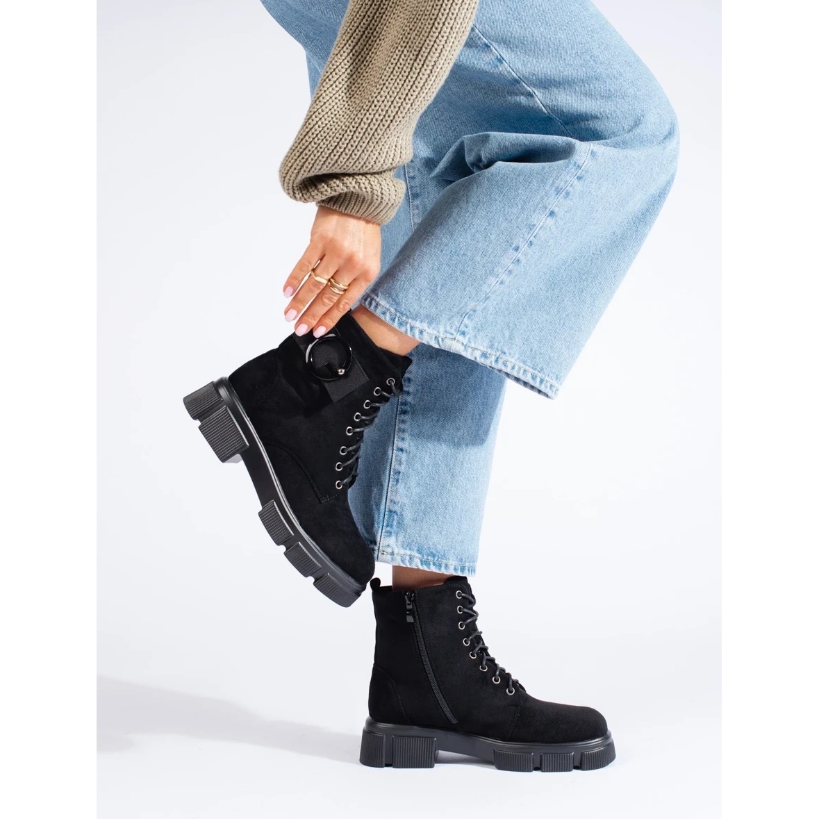 Elegantní, univerzální ženské pracovníky vyrobené z měkkého ekologického semiše - ideální pro podzim a zimu. Kombinují neformální a skalní charakter s pohodlí izolované vložky, stabilní podešev s běhounem a praktickým zipem a šněrováním upevňování.