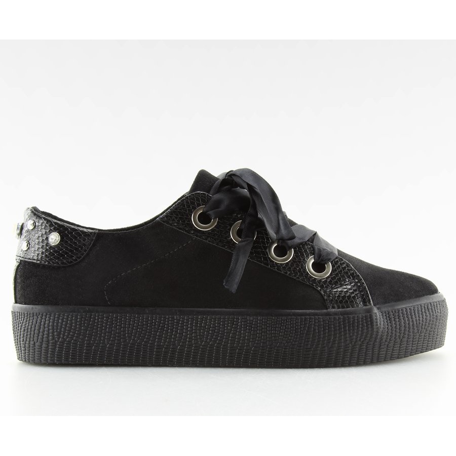 Objevte jedinečný styl s černými dámskými teniskami BS096 BAS-1 Black, které spojují eleganci a pohodlí. Tyto krásné tenisky byly pečlivě vyrobeny z třpytivého ekologického semiše, díky čemuž jsou nejen módní, ale také šetrné k životnímu prostředí. Jejich klasický střih byl obohacen o nejnovější trendy včetně stuh namísto tradičních tkaniček, které dodávají originalitu a jemný lesk.