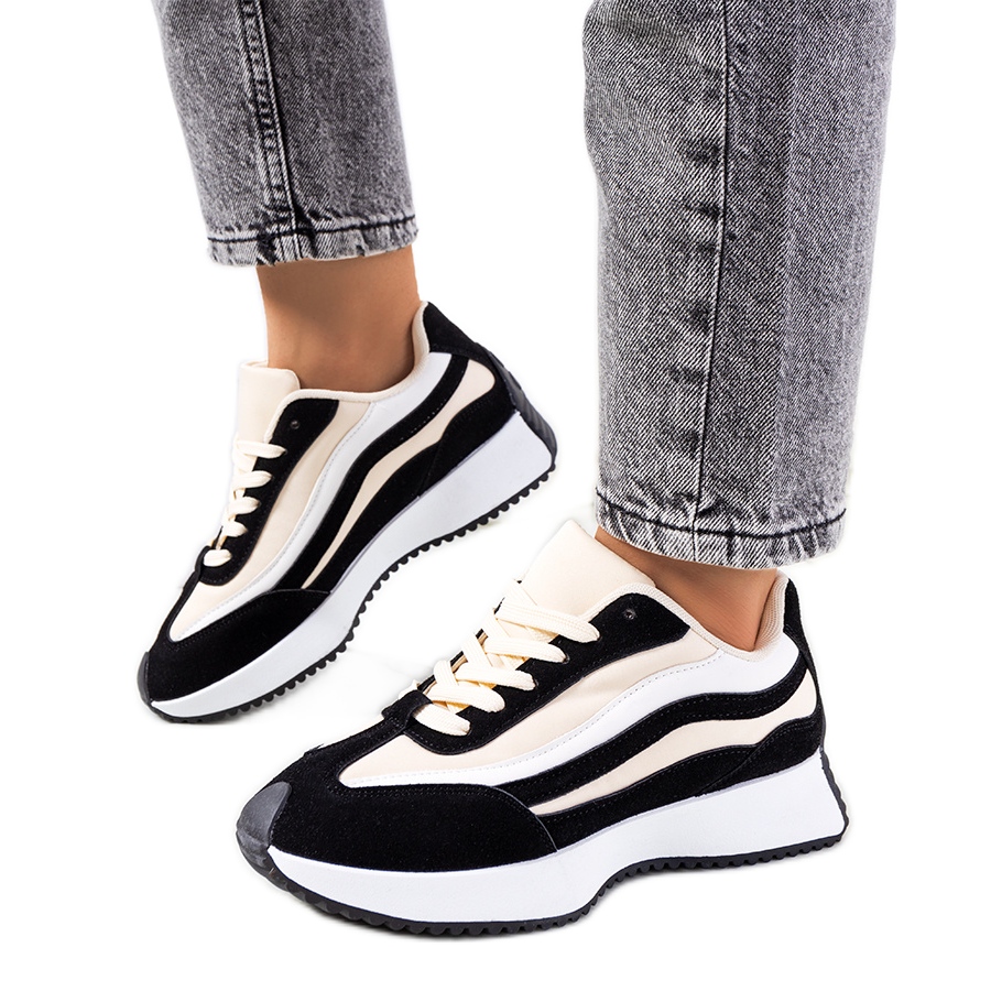 Černé dámské tenisky Hofste jsou dokonalou kombinací stylu a funkčnosti. Tento model se vyznačuje jedinečným designem, kombinujícím nejmódnější barvy sezóny, včetně elegantní béžové. Vysoká podešev, která jemně překrývá patu, je zajímavým akcentem a dodává botám moderní vzhled.