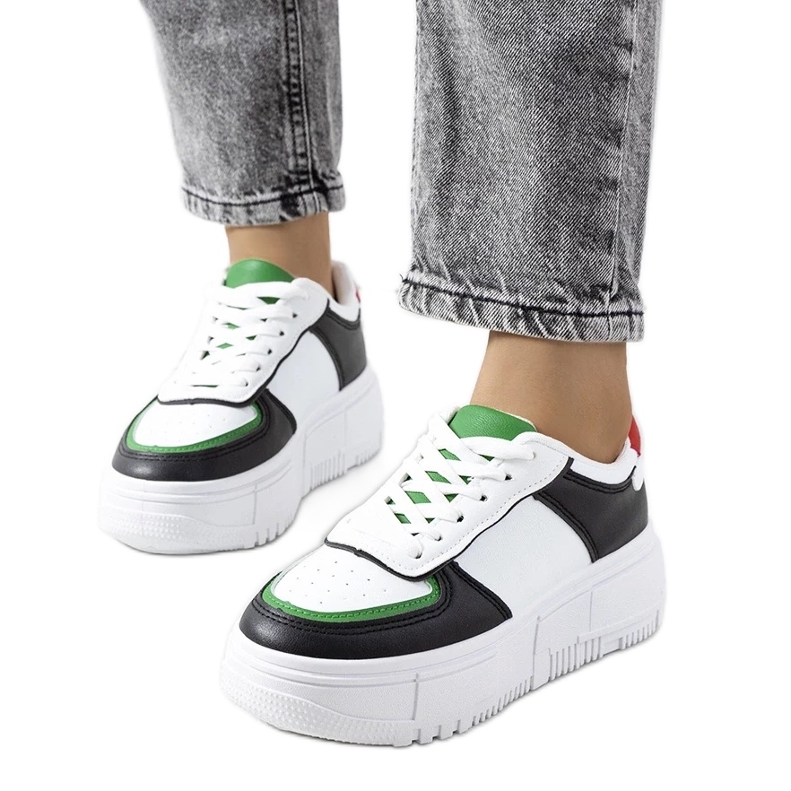 Mandib Sneakers, vyrobené z vysoce kvalitních ekologických pokožek, potěší především extrémně elegantní vložky s ekologickou částí v zasněžené bílé barvě, která dokonale kontrastuje s černou základnou. Taková barevná kombinace zaručuje, že vaše stylizace získá jedinečný charakter. Tyto tenisky budou skvělým doplňkem příležitostných i elegantnějších oděvů na jaře a v létě.
