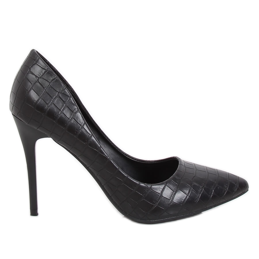 Inna marka Černé dámské vysoké podpatky hadí kůže GG-81P Black černá