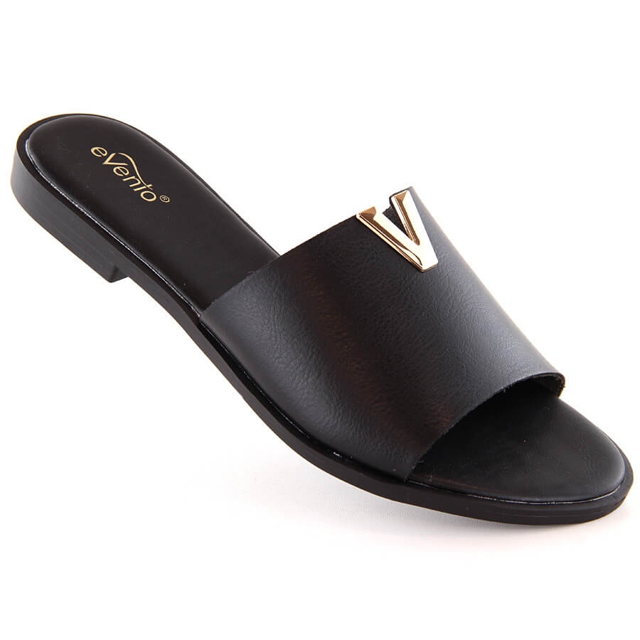 Evento Černé dámské žabky eVento 7736 na nízkém podpatku černá