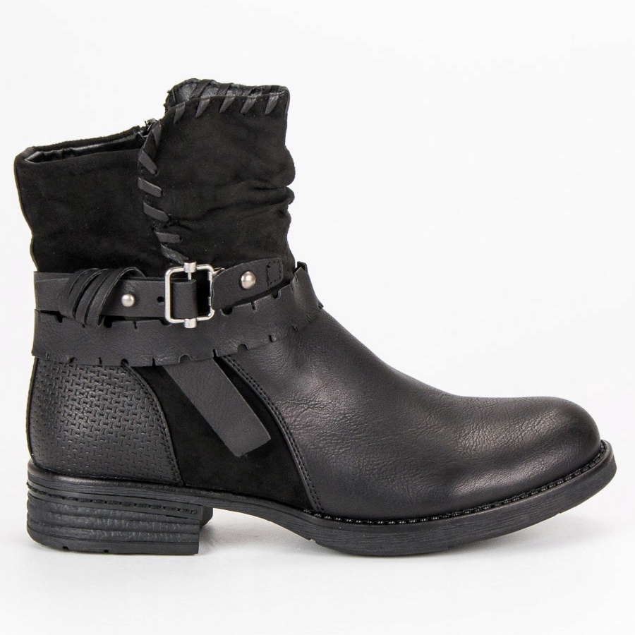Kotníkové boty SDS jsou ideální nabídkou pro ženy, které oceňují pohodlí a módní vzhled. Tyto černé dělnice vyrobené z vysoce kvalitní ekologické kůže a semiše se vyznačují moderním designem a funkčností. Jejich plochý 3 cm vysoký podpatek je předurčuje pro každodenní nošení a zajišťuje pohodlí i po dlouhodobém nošení.