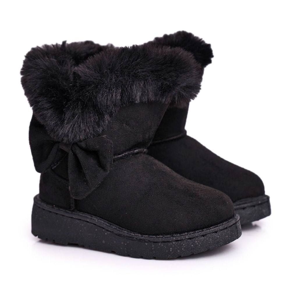 FRROCK FRROCK Černé dětské sněhové boty Vella s kožešinovou mašlí černá