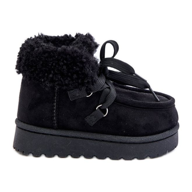 Černé dětské sněhule Adelane zateplené kožíškem černý