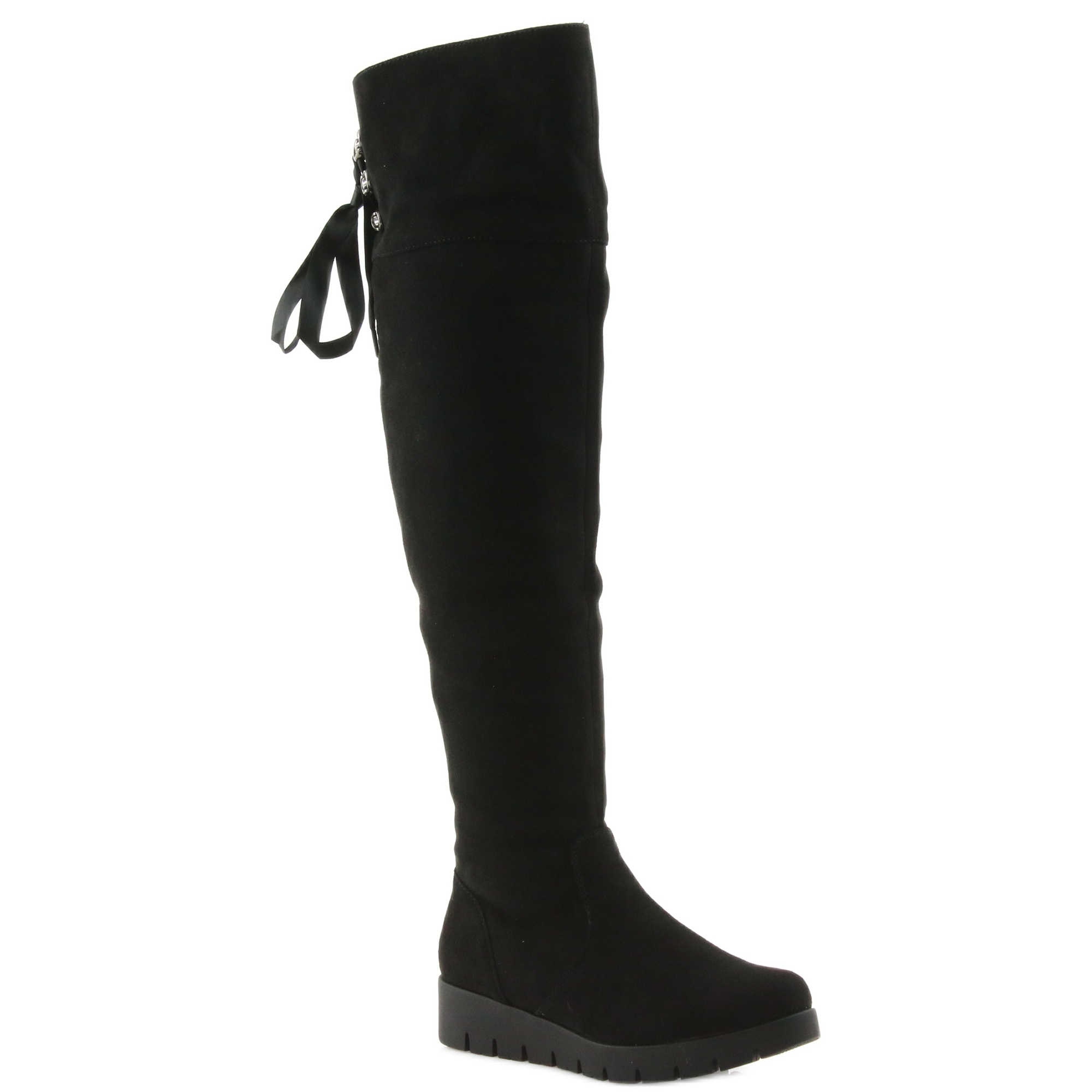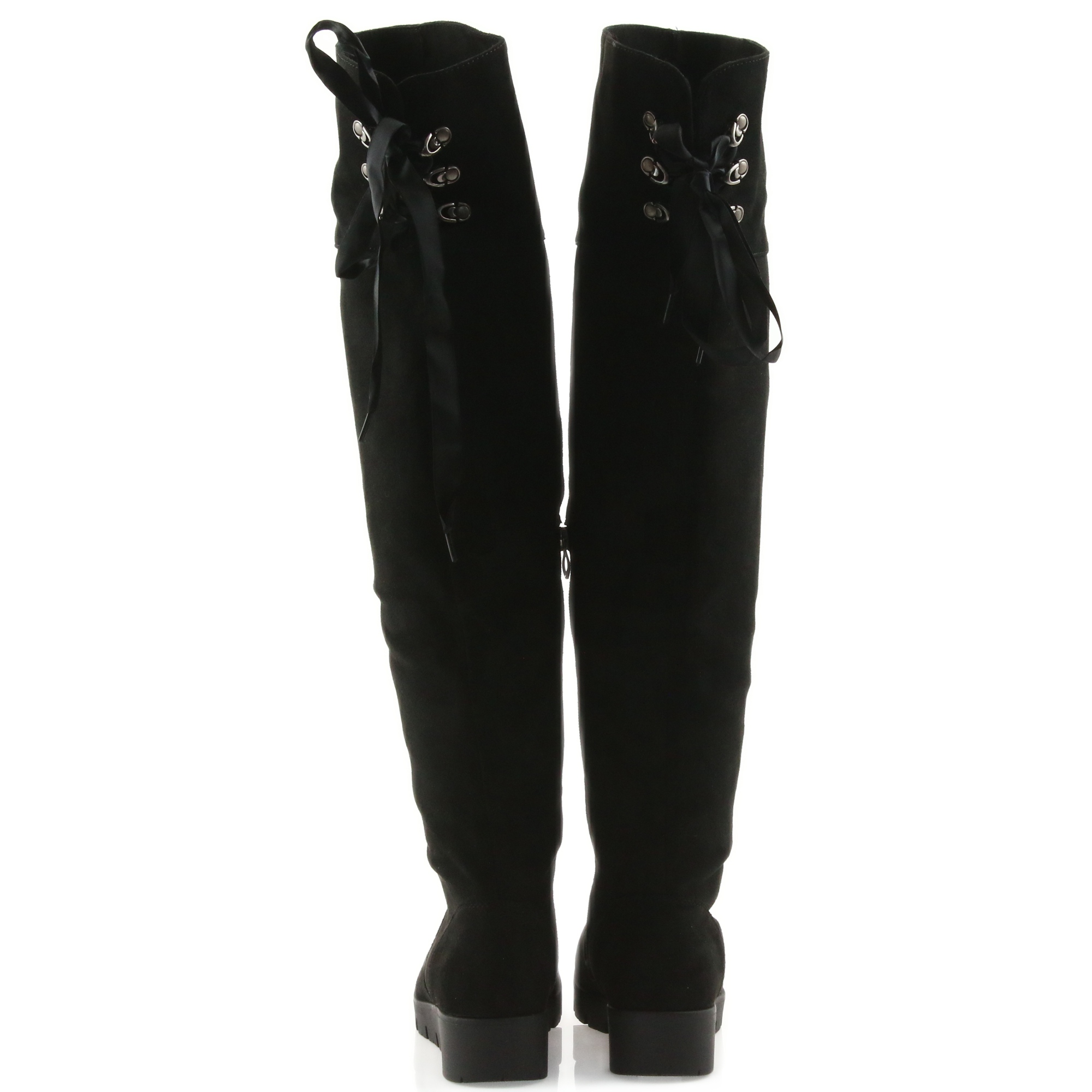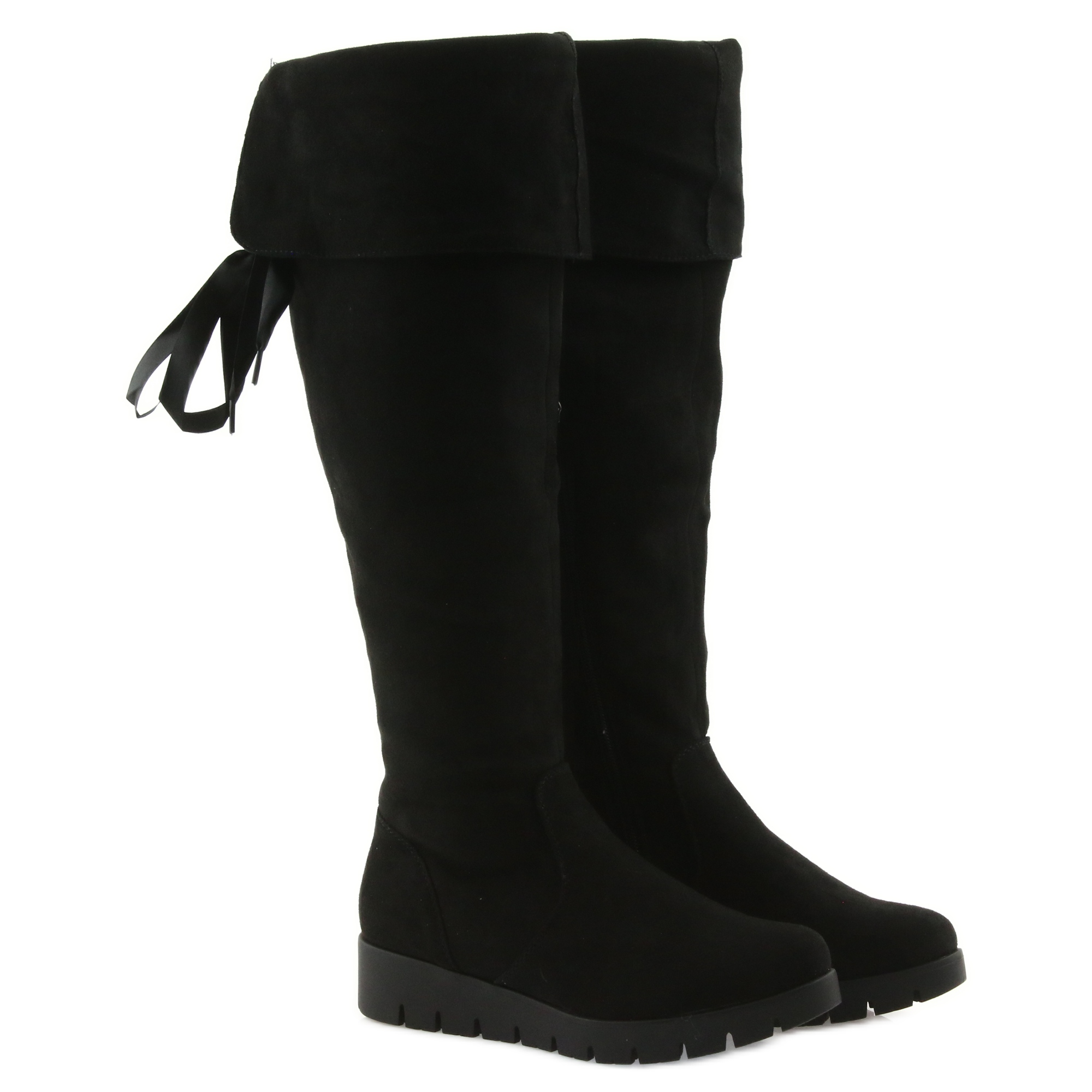 Dlouhé kozačky nad kolena Filippo 468 jsou nesporným hitem sezóny, kombinující eleganci s funkčností. Tyto černé boty vyrobené z vysoce kvalitní ekologické semišové kůže nejen působivě vypadají, ale také zajistí pohodlí při celodenním nošení. Jejich horní výška cca 57 cm skvěle padnou na nohu a subtilní platforma vysoká 3,5 cm dodává optickou lehkost a zvýrazňuje postavu.