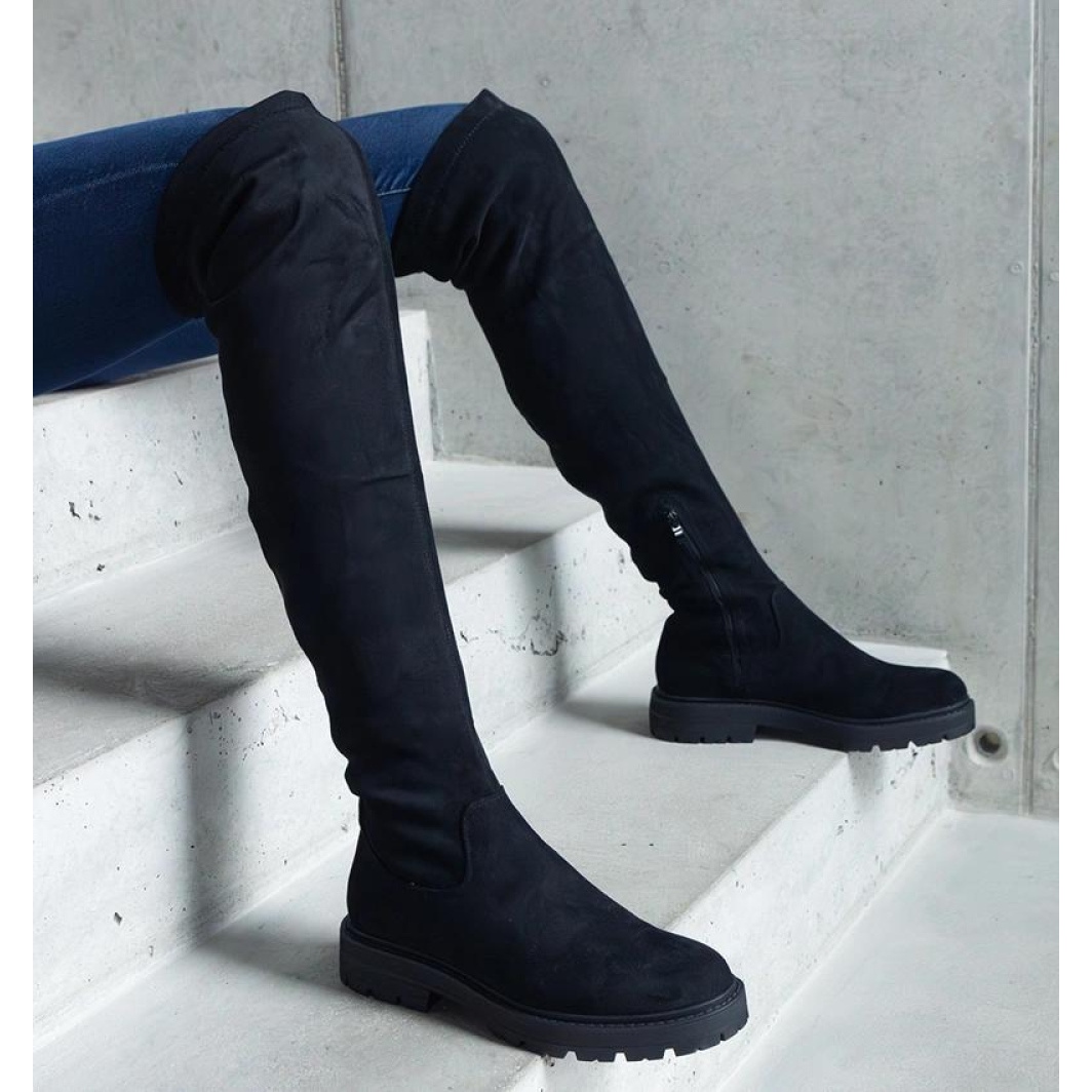 Solea Černé dlouhé kozačky s plochou podrážkou značky Tromi - Solea černá