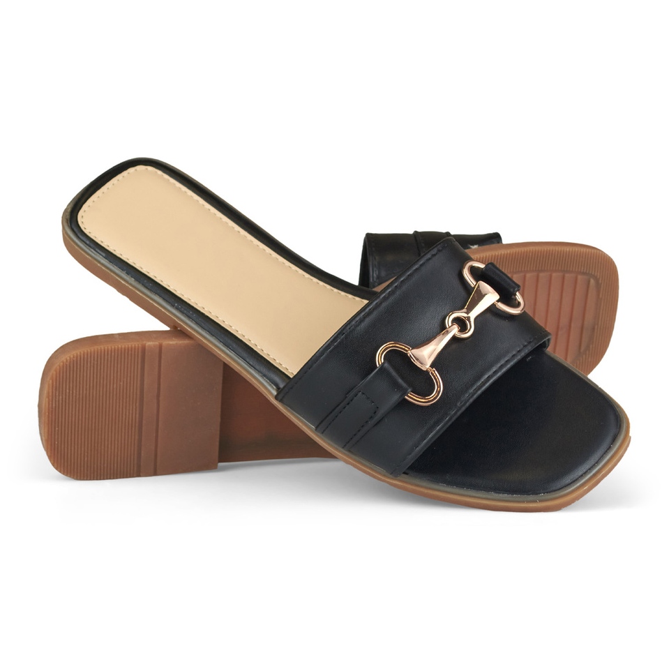 Černé elegantní ženské pantofle s přezkou - styl a pohodlí každý den
