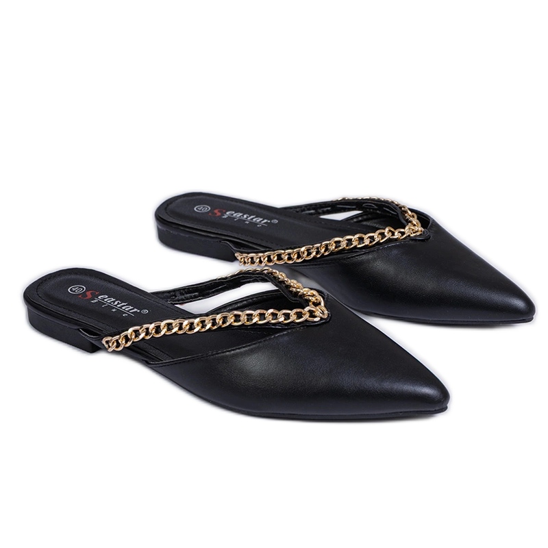 Neváhejte! Obohajte kolekci obuvi pomocí tohoto elegantního modelu, který kombinuje styl, pohodlí a funkčnost. Černé žabky zdobené řetězem jsou absolutní nutností pro nadcházející letní dny!