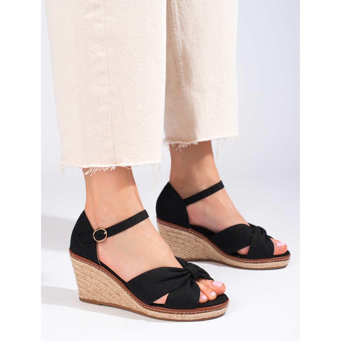 SHELOVET Černé espadrilkové sandály na klínku Shelovet černá