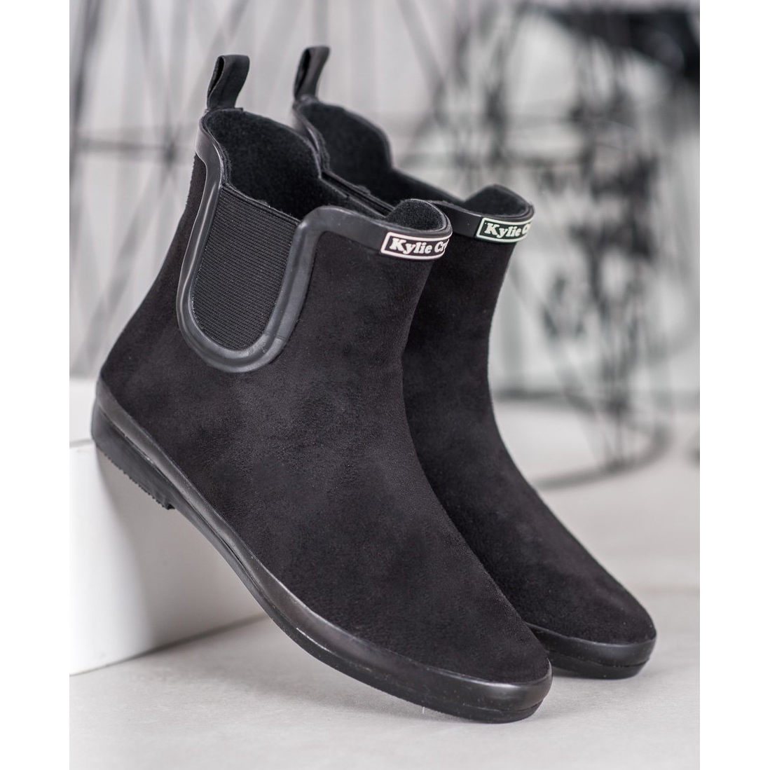 Představujeme elegantní černé holínky značky Kylie, které spojují styl a funkčnost. Tyto dámské boty do deště vyrobené z ekologické semišové kůže se perfektně hodí do ležérního stylu a zároveň poskytují pohodlí v deštivých dnech.