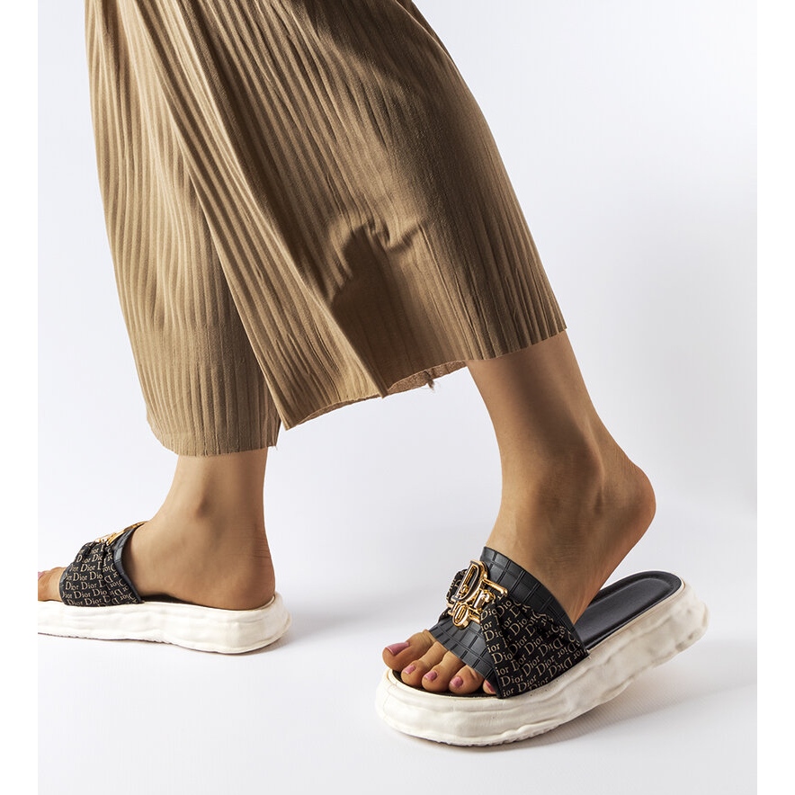 Jejich modernistický černý design se dokonale hodí k různým letním stylizacím a zlaté akcenty jim dodávají exkluzivní charakter. Tyto žabky jsou perfektní volbou jak na pláž, tak na procházky městem, dokonale se hodí k ležérnímu stylu.