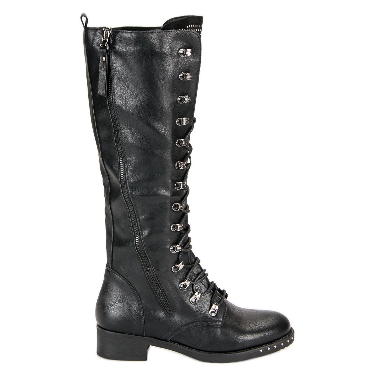 Jejich klasický tvar v kombinaci s elegantní černou barvou tyto kozačky úspěšně doplňují jak elegantní, ležérní, tak rockový styl. Kamínky umístěné pod tkaničkami a na podrážce jim dodávají odvážný charakter a vyčnívají z davu.