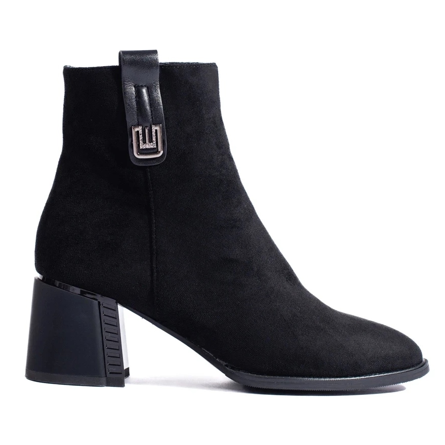 Klasické, nadčasové boty Shelovet v černém odstínu je návrh pro ženy, které si cení stylu a pohodlí. Vyrobeno z vysoce kvalitní ekologické kůže se semišovou strukturou, jsou ideální pro podzimní a jaro. Díky oteplování poskytují teplo v chladnějších dnech a ztuženou patu a stabilní patu, jako je post, zaručuje určitý držení nohy.