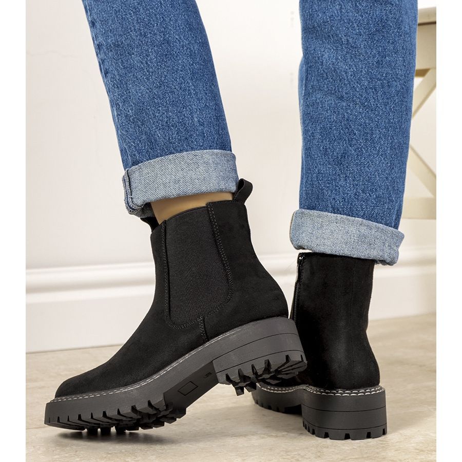 Černé klasické zateplené kotníkové boty Noam jsou ideální volbou pro ženy, které ocení módní a přitom klasický styl. Tyto kotníkové boty vyrobené z ekologické semišové kůže kombinují eleganci s šetrností k životnímu prostředí. Díky elastické vložce je obouvání a vyzouvání extrémně pohodlné a bílé prošívání na podrážce jim dodává výrazný stylový vzhled.