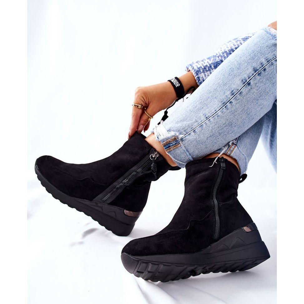 PE1 Černé klínové boty Athelaine semiš černý
