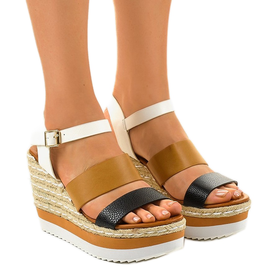 Podrobnosti: Černé klínové sandály espadrilky VB76062 bílý hnědý černá vícebarevný