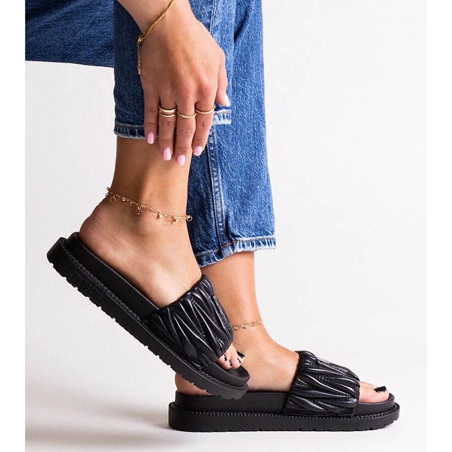 Jejich minimalistická černá barva způsobuje, že se tyto žabky dokonale shodují s různými styly, od sportovních příležitostných po letní šaty. Díky výšce platformy 4 cm přidávají k obrázku lehkost a zároveň nabízejí stabilitu a pohodlí v každém kroku.