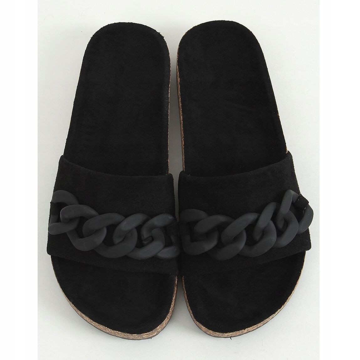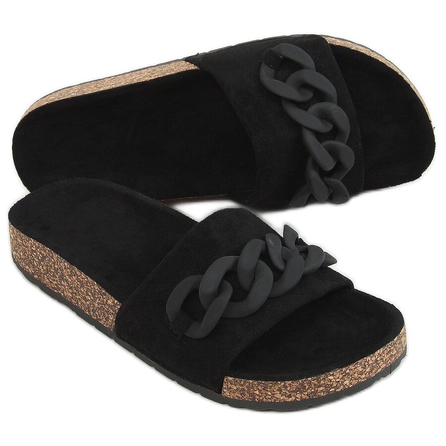 Inna marka Černé korkové pantofle s řetízkem DZ907 Black černá