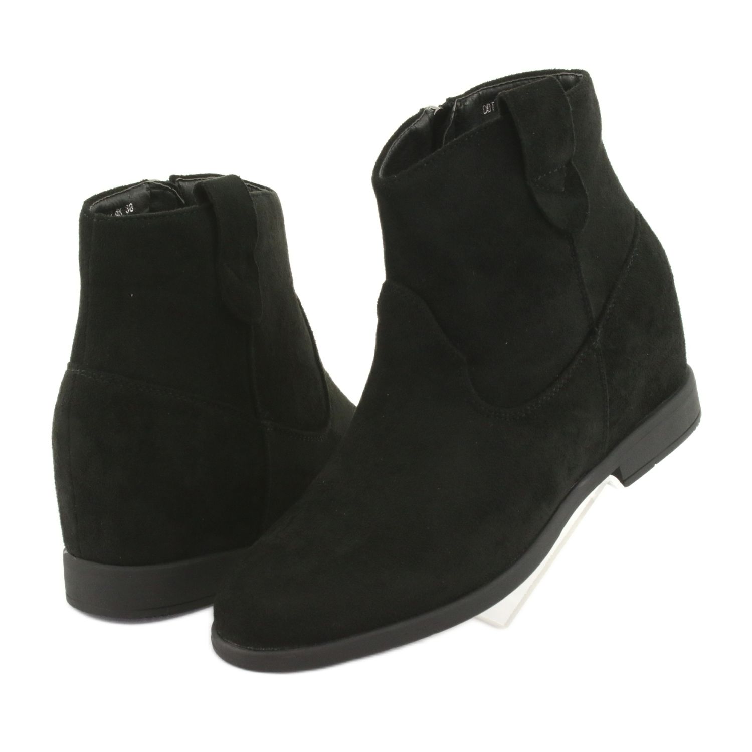 Boty vyrobené z vysoce kvalitní ekologické semišové kůže působí mimořádně noblesně a díky sytě černé barvě jsou univerzální. Zapínání na zip je nejen pohodlné na oblékání, ale také stylový prvek. Skrytý 5 centimetrů vysoký klínek však decentně zvýrazňuje postavu a umožňuje pohodlí a stabilitu při chůzi.